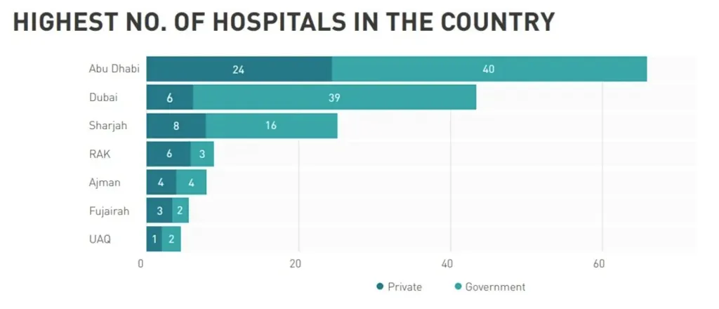 من المتوقع أن يصل سوق تحليلات الرعاية الصحية في دولة الإمارات وأبوظبي إلى إيرادات تبلغ 908.7 مليون دولار بحلول عام 2030، بمعدل نمو سنوي مركب يبلغ 22.1% بين عامي 2024 و2030. في عام 2023، بلغت إيرادات السوق 225 مليون دولار، أي ما يعادل 0.5% من سوق تحليلات الرعاية الصحية العالمي. وتبرز أبوظبي داخل الدولة كمركز رئيسي للبنية التحتية الصحية، حيث تضم أكبر عدد من المستشفيات (64 مستشفى) والأسِرّة (7,689 سريرًا) في كل من القطاعين الحكومي والخاص. وهذا يجعل من أبوظبي المحرك الرئيسي لاعتماد تحليلات الرعاية الصحية في الدولة، مستفيدة من البيانات الضخمة والذكاء الاصطناعي لتحسين النتائج العلاجية وتقديم حلول رعاية تنبؤية.