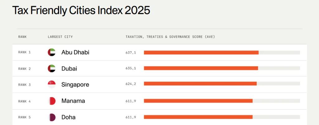 In 2025, Abu Dhabi has officially claimed the title of the world’s most tax-friendly city, scoring an impressive 637.1 on Multipolitan’s Tax Friendly Cities Index. This composite score reflects a blend of zero personal income tax, low property transfer fees, and robust legal infrastructure—making Abu Dhabi not just a fiscal haven, but a strategic base for global wealth preservation.