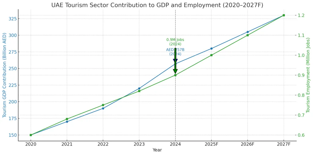 In 2024, tourism contributed over AED 257 billion to the UAE economy—roughly 12% of national GDP—supporting nearly 900,000 jobs. International visitors accounted for AED 217 billion in spending, with domestic tourism adding another AED 57.6 billion. And with over 120 million passengers processed at the country’s major airports, the infrastructure backbone to absorb a fresh wave of inbound demand is well in place.