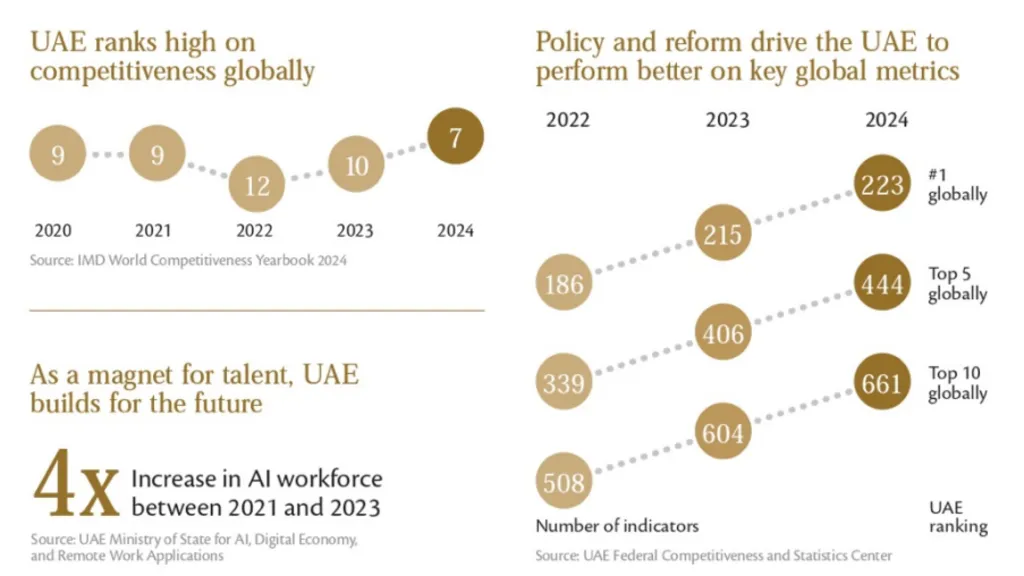 Between 2021 and 2023, the UAE's AI workforce grew fourfold, reflecting the emirate’s ambition to lead in emerging technologies. This rapid expansion requires more than just training programs. It demands intelligence on talent pipelines, R&D output, and global competitiveness. Economic intelligence platforms help track these dynamics, ensuring that workforce development aligns with sectoral priorities and long-term economic goals.